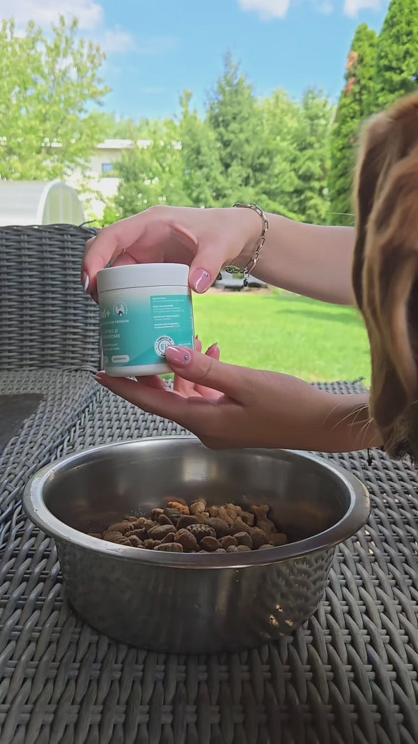 Nasz proszek dentystyczny premium został zaprojektowany, aby wspierać higienę jamy ustnej psa oraz jego ogólne zdrowie.